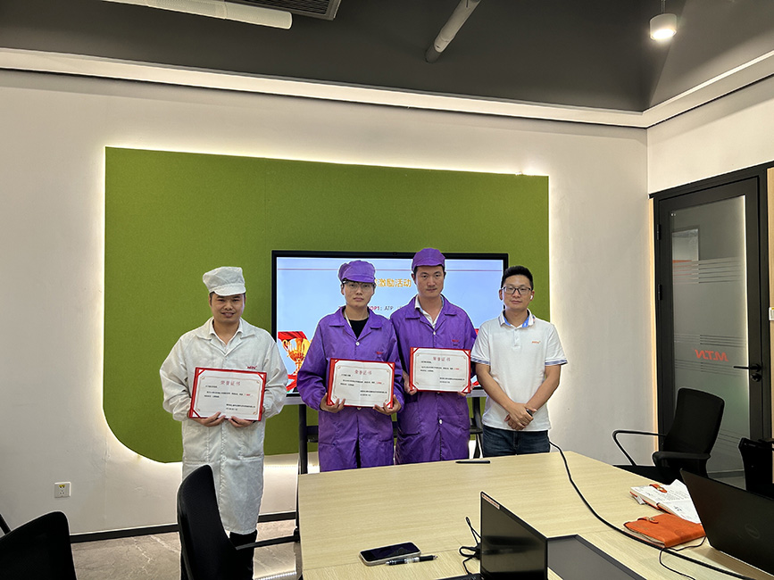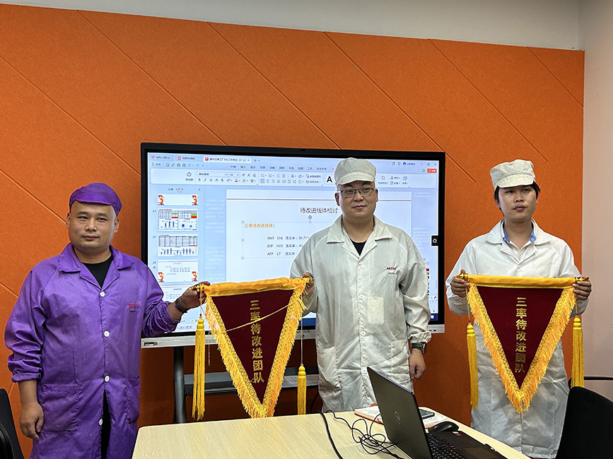 經(jīng)過嚴格的評選和審核,決出綜合前三名于三率月會中進行頒獎鼓勵。三位組長所在線體當月未發(fā)生重大異常、否機、客訴等,且落實率均在90%以上,希望他們作為三率標桿隊伍繼續(xù)保持優(yōu)良作風。