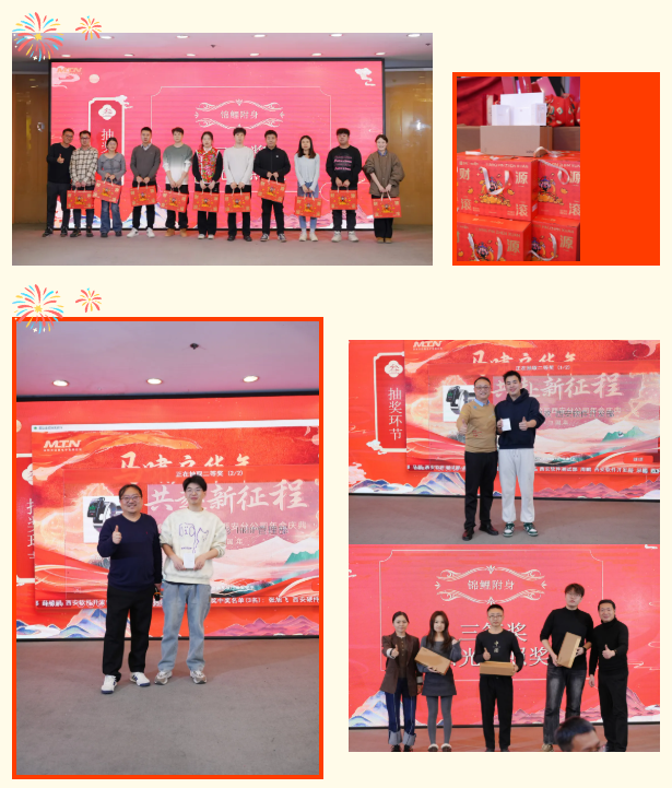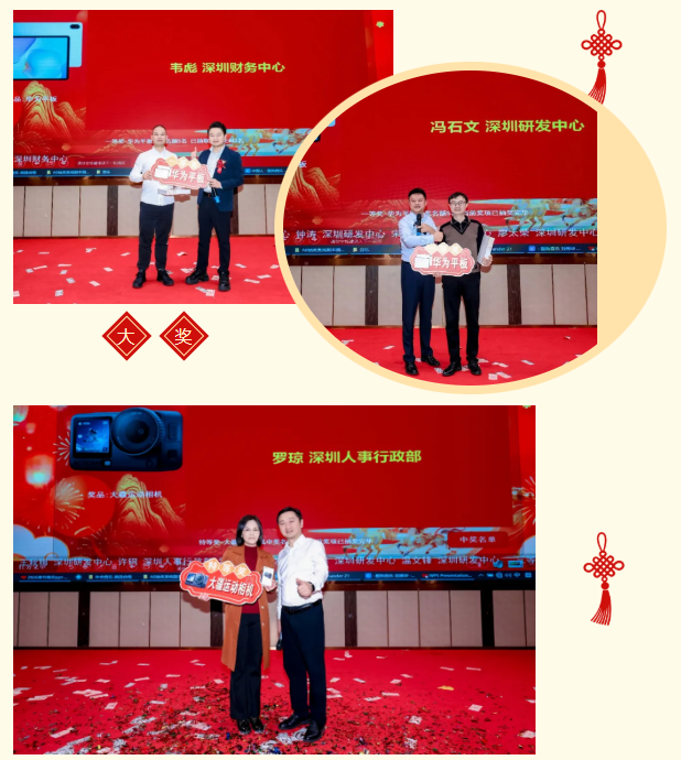 幸運(yùn)獎(jiǎng)年貨大禮包、三等獎(jiǎng)徠芬高速吹風(fēng)機(jī)/美的電飯煲、二等獎(jiǎng)華為手表、一等獎(jiǎng)華為平板MatePad、特等獎(jiǎng)大疆運(yùn)動(dòng)相機(jī)輪番送出,更有黃總現(xiàn)場(chǎng)嘉獎(jiǎng)6666元紅包,驚喜不斷、歡樂(lè)不停。