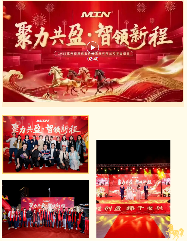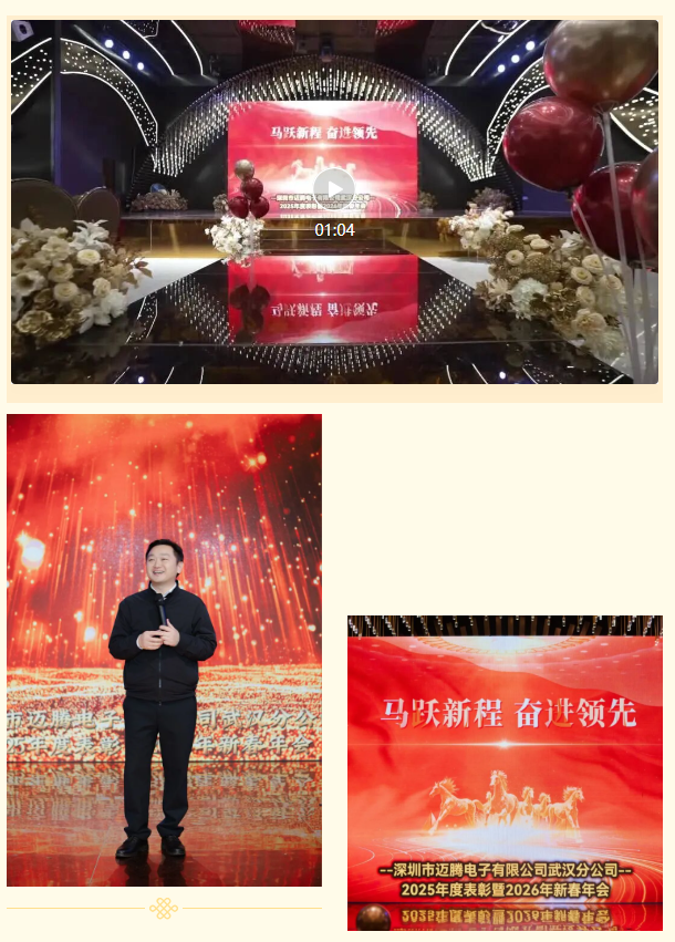 辭舊迎新啟新程,凝心聚力赴華章。 邁騰集團(tuán)2025年度表彰暨2026年迎春晚會(huì),在深圳總部,華東鹽城工廠、華南惠州工廠、武漢研發(fā)、成都研發(fā)、西安研發(fā)多地相繼舉辦。