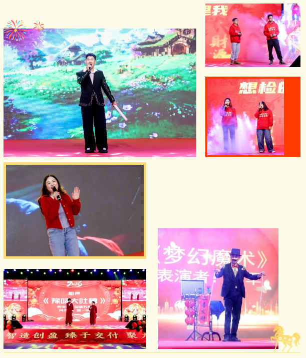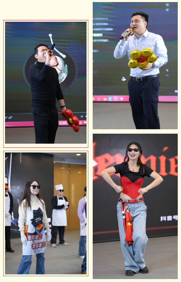 開場(chǎng)舞《新年快樂(lè)》熱情登場(chǎng),拉開晚會(huì)序幕,各場(chǎng)地員工自編自演,展現(xiàn)邁騰人多才多藝的風(fēng)采,傳遞大家庭的溫暖。