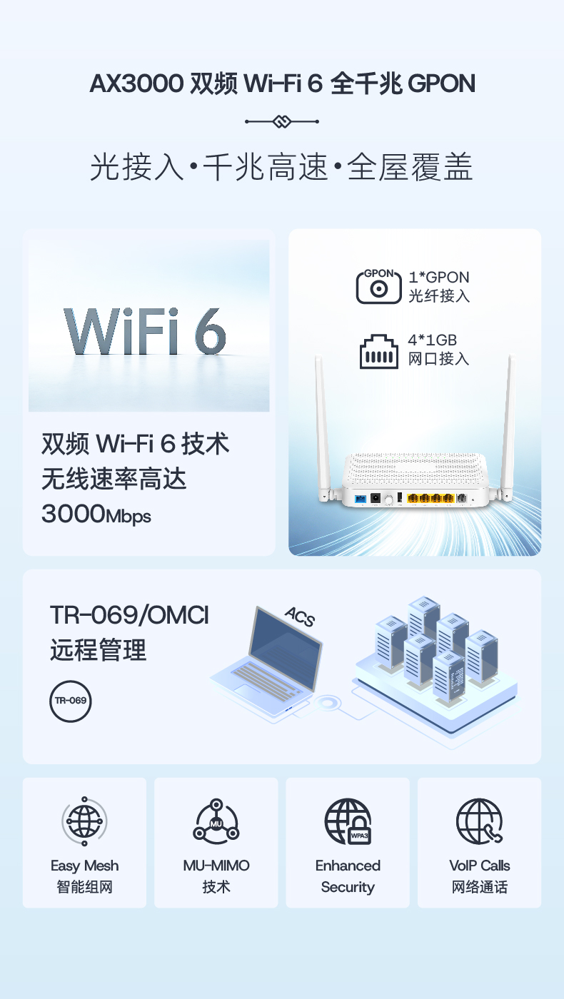 光纖入戶優選!AX3000雙頻Wi-Fi 6+全千兆GPON,光網智聯硬核實力拉滿