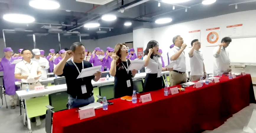 在莊嚴的氛圍中,班組長們整齊列隊,緊握右拳,高聲宣誓,鏗鏘有力的誓言回蕩在會場,展現了班組長們堅定的決心和信念。