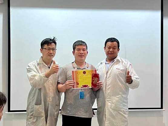 會議開始后,主持人首先介紹會議內容,并帶領大家對第一階段TPM開展的活動及TWI結果進行了精彩回顧。隨后進入到激動人心的頒獎環節,華南工廠領導為3個優秀團隊進行了頒獎以及與TWI優質的培訓文檔成員合影。
