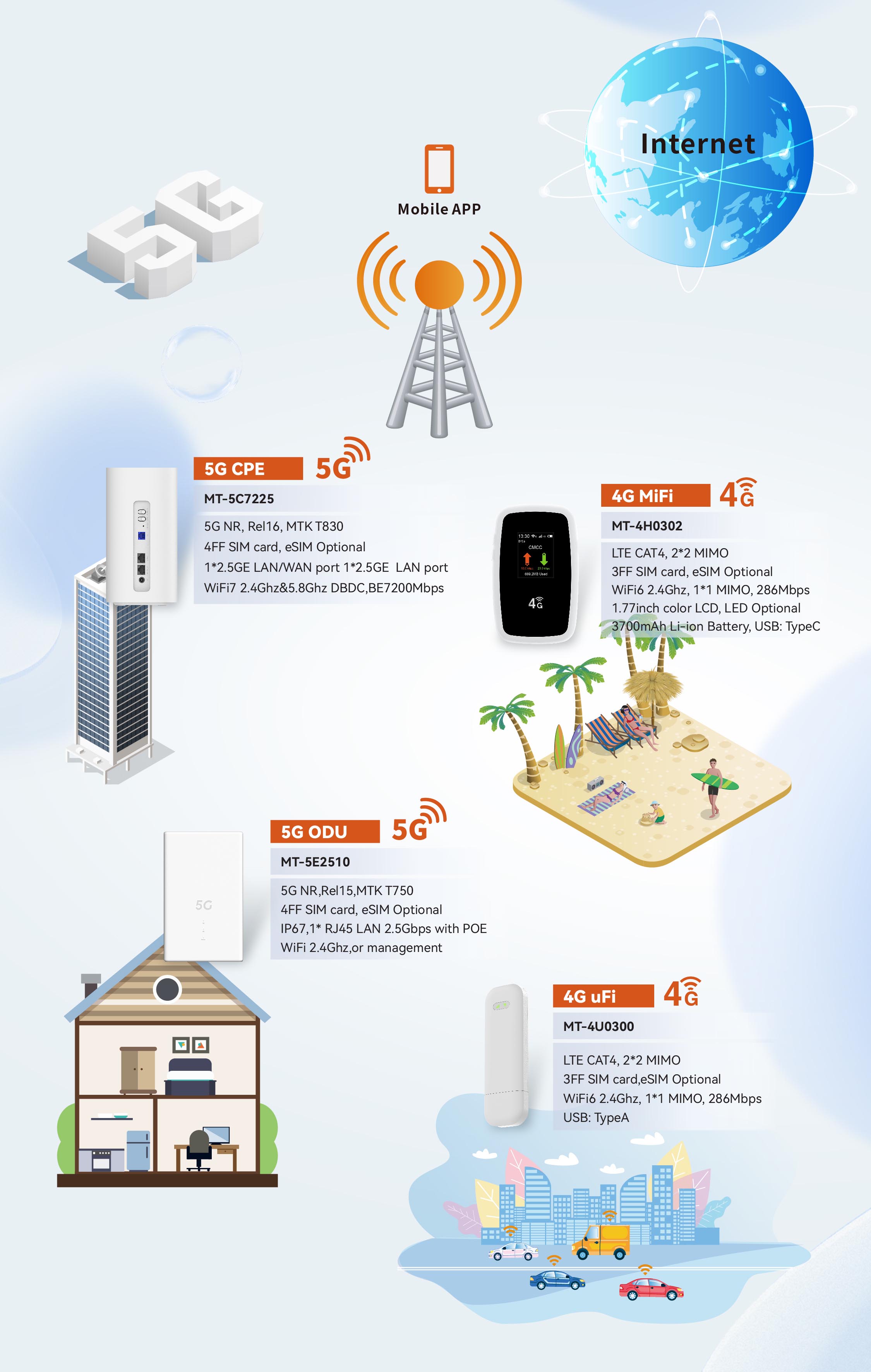 FWA: 安裝便捷,即插即用,快速搭建網絡,滿足多樣化需求,為家庭和企業提供穩定、高速的固定無線寬帶接入。
