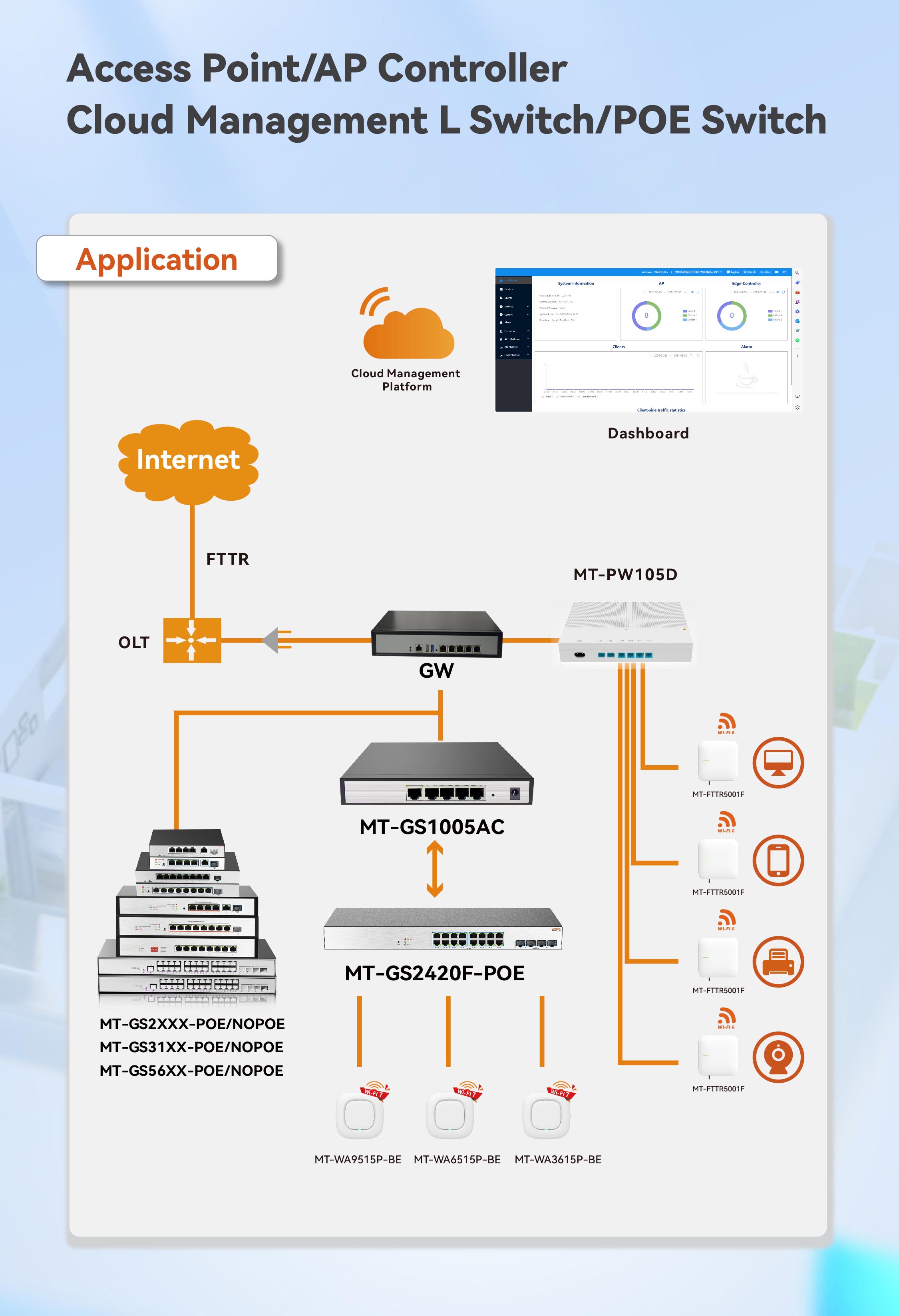 具備高性能的數據交換能力,支持多端口連接,能有效提升網絡的傳輸效率和穩定性;支持云管理平臺,實現對設備的遠程監控、配置管理、故障診斷和軟件升級,大大提高了管理效率。
