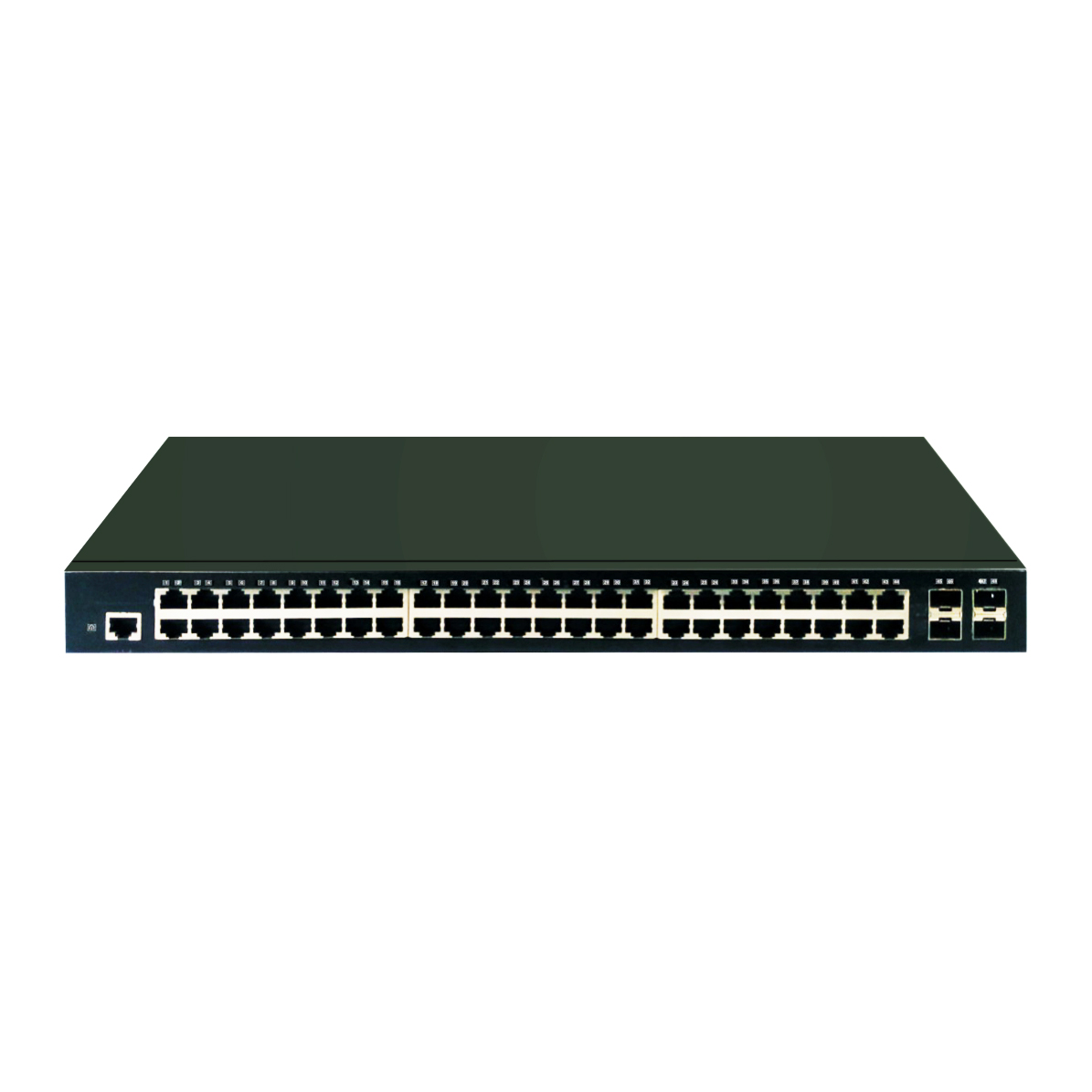 | 標準配置 | 48個 10/100/1000M RJ-45 MDI/MDI-X 自適應端口,4個萬兆SFP+口 |