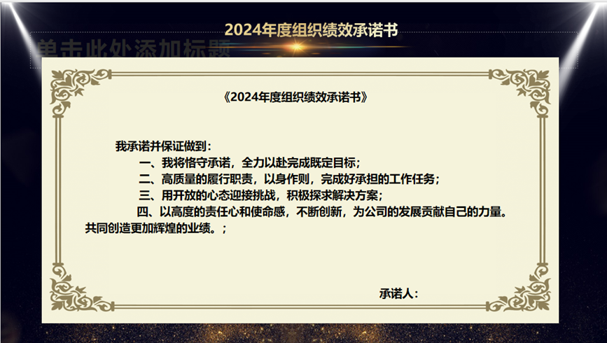 簽署績效指標責任書是為了更好地明確任務,強化責任。總經理寄語全體同仁,要以高度的責任感和飽滿的熱情投入工作,共同為達成公司2024年度的戰略發展目標而努力奮斗。