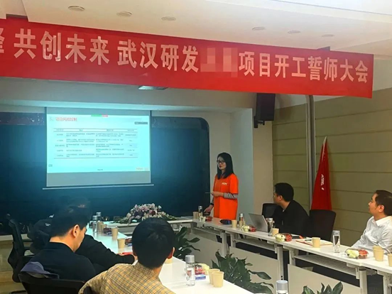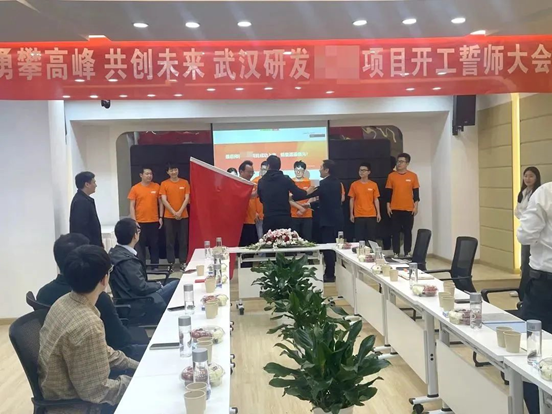 授旗領命,誓師動員。4月28號,邁騰電子武漢研發中心承接的國內某網通TOP客戶首個 WiFi7 項目開工誓師大會在武漢未來科技城如期舉行。客戶蒞臨現場參加項目開工誓師大會。